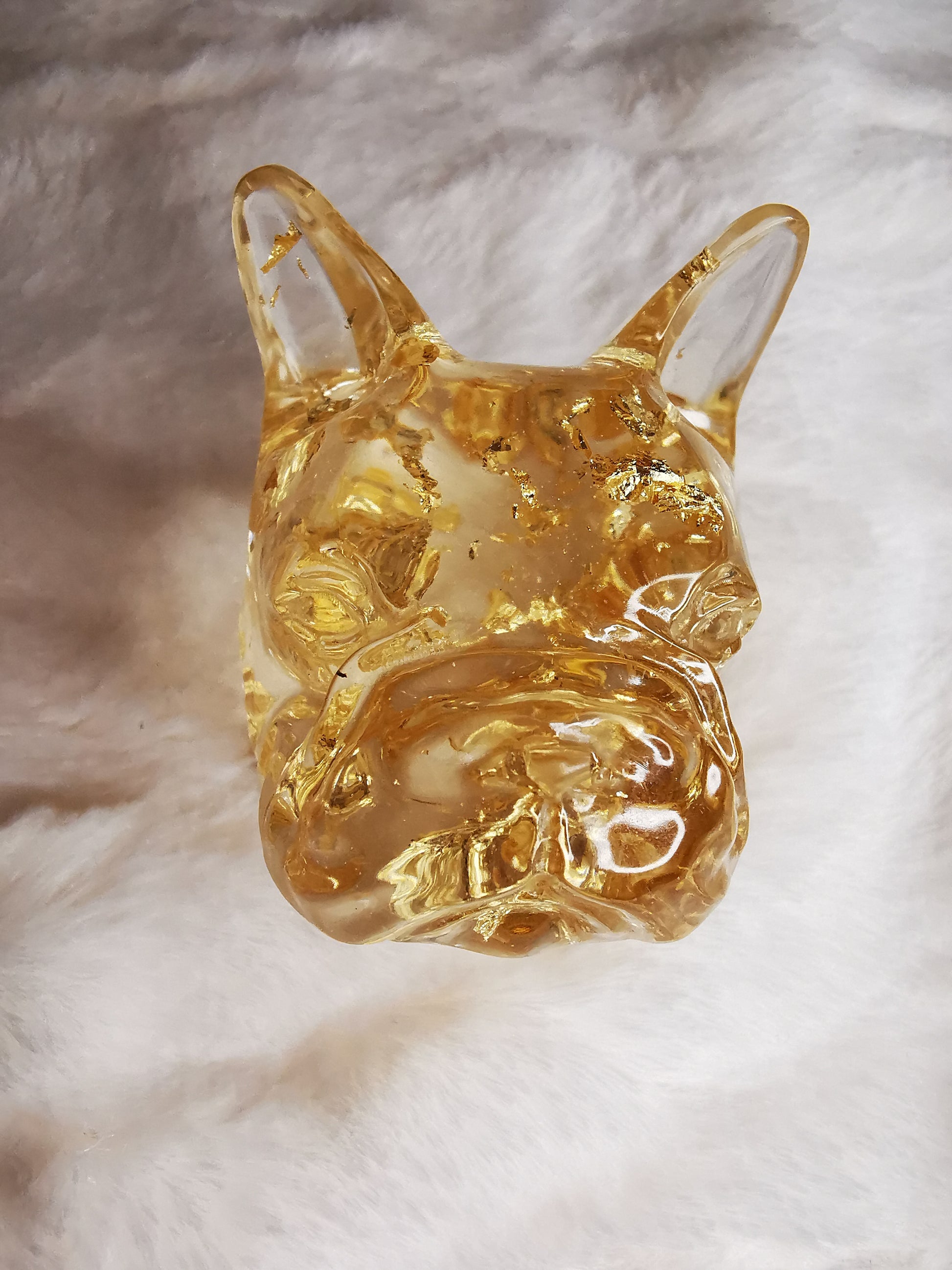 Bouledog français décoratif transparent avec feuilles d'or