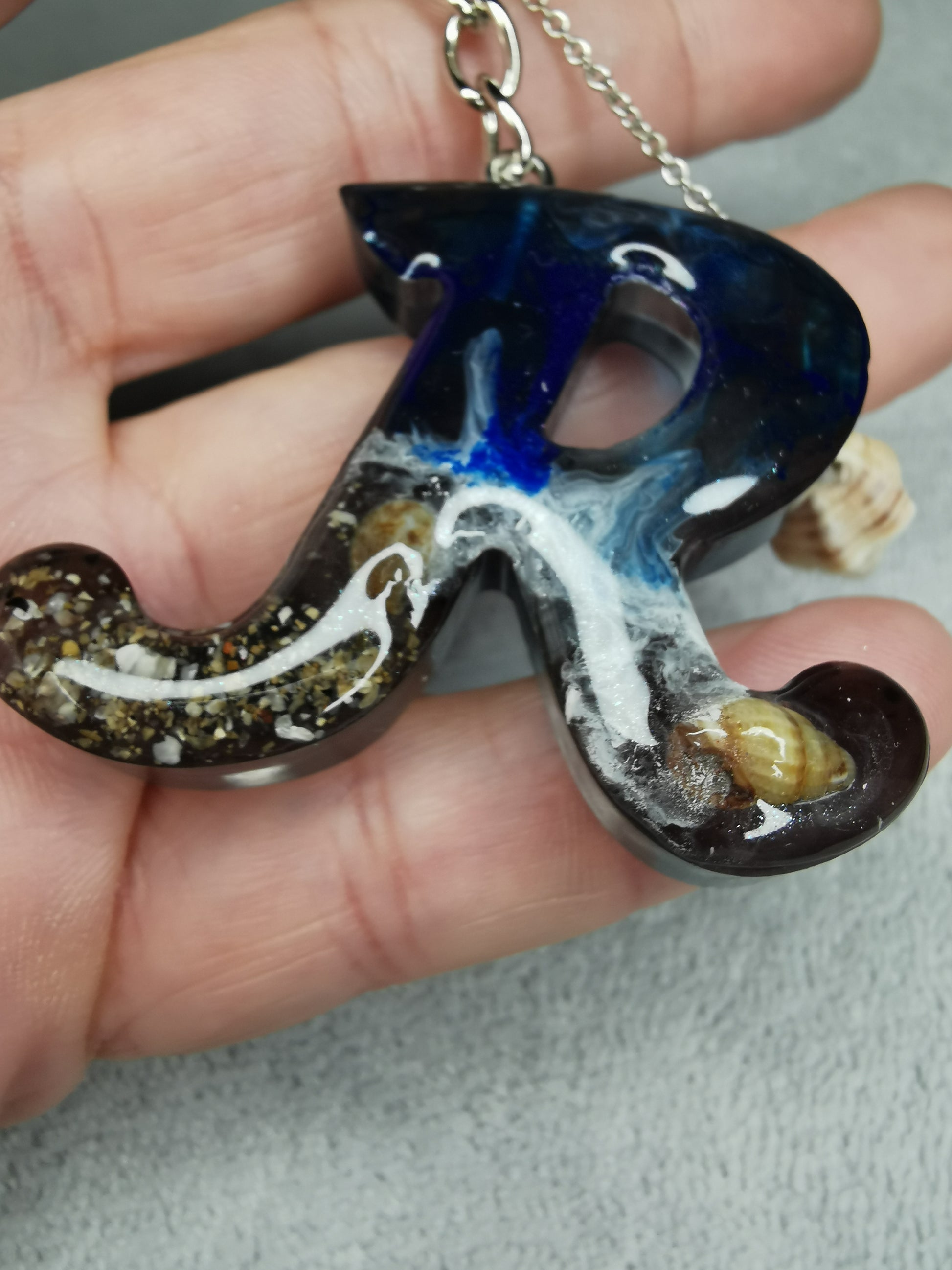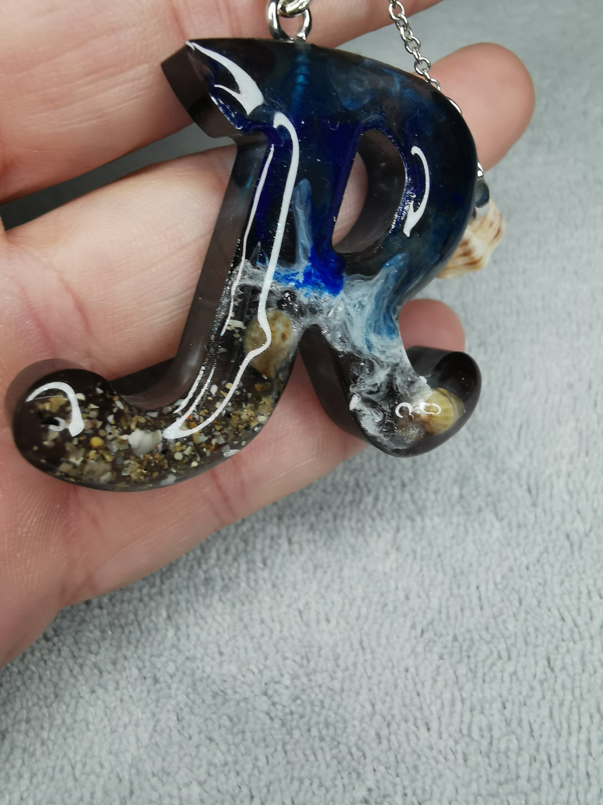 Porte clé lettre R effet mer