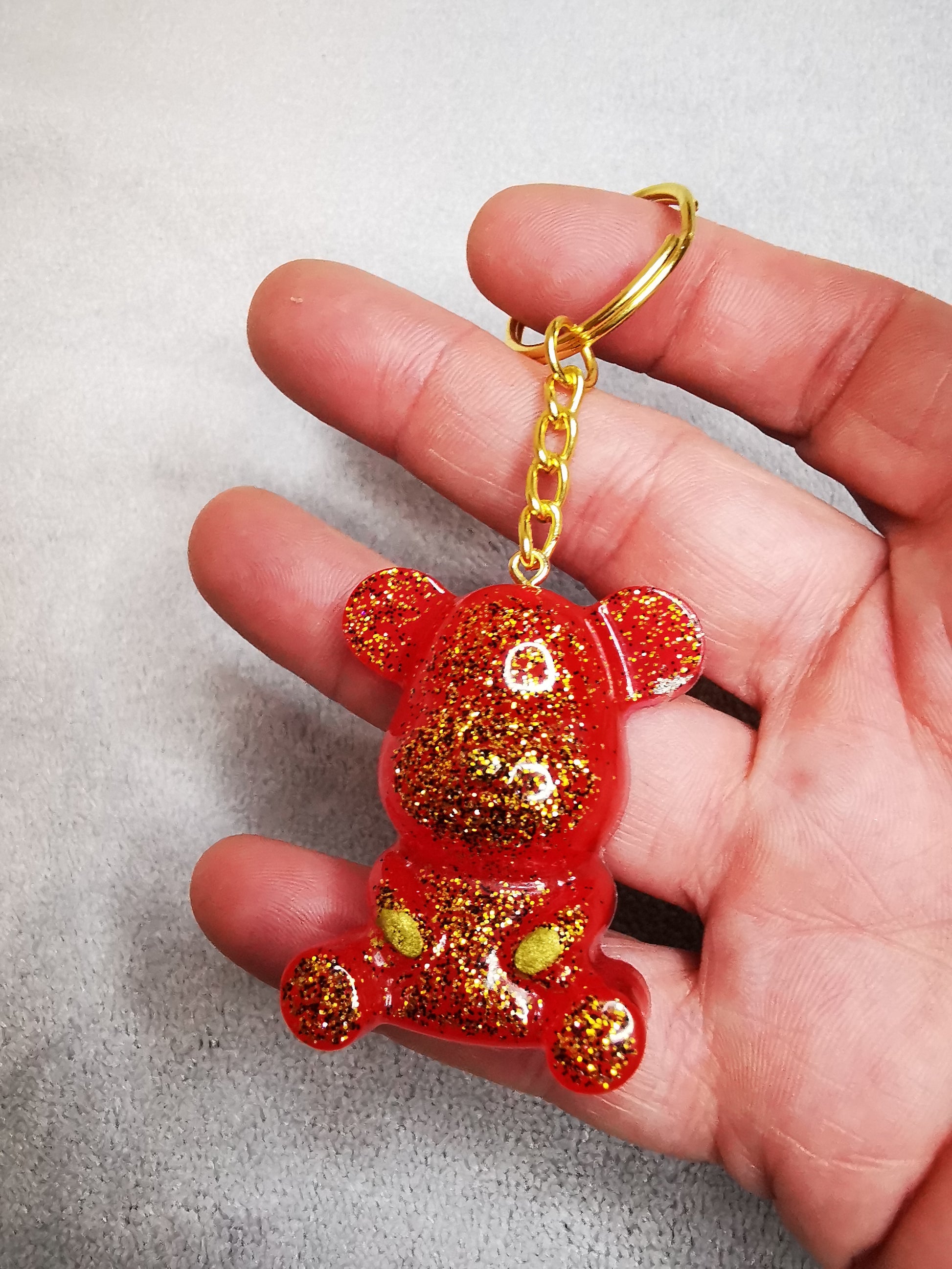 Porte clé ourson rouge/rose pailleté or