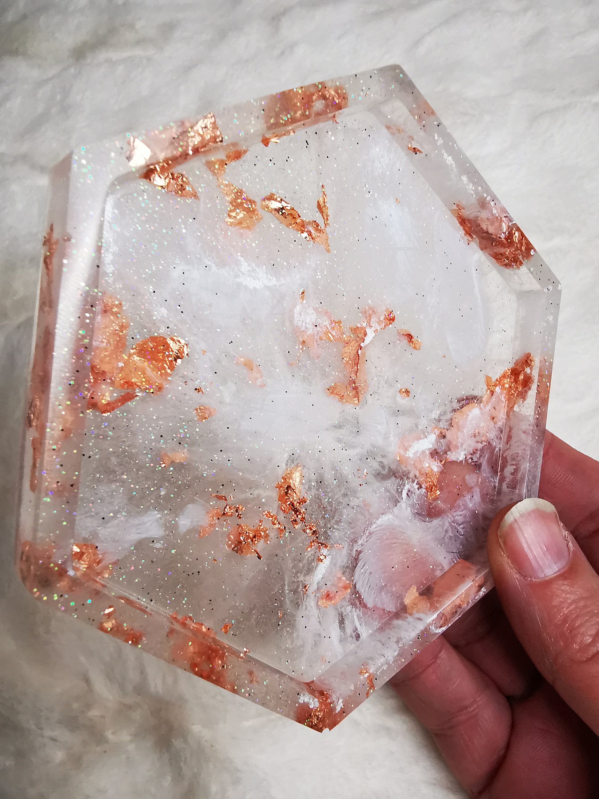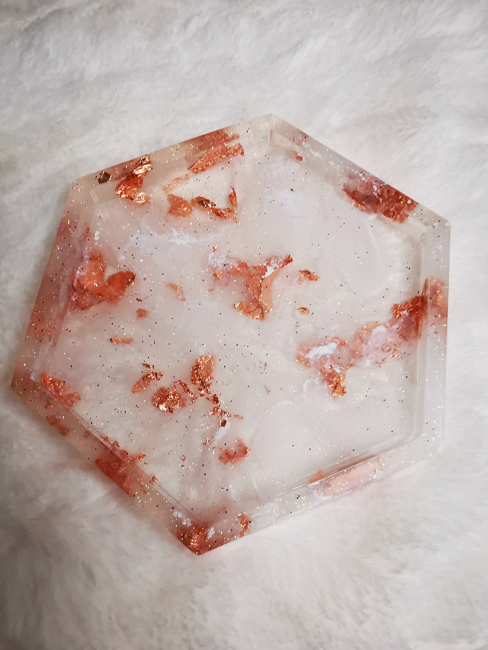 vide poche blanc transparent avec des feuilles cuivrés