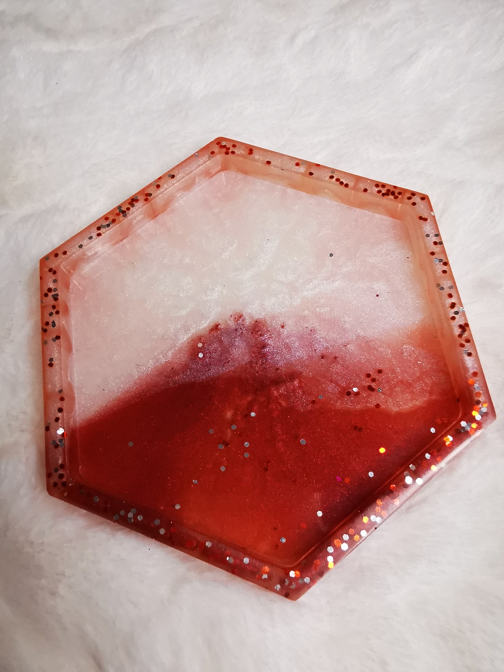 vide poche rouge et blanc pailletté